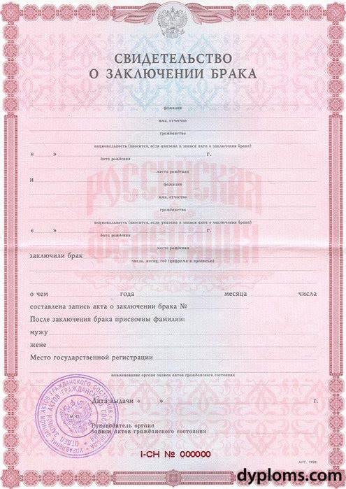 Сразу может показаться, что документ о браке, образец которого везде одинаковый, может и не быть таким важным документом. Ведь на первый взгляд оно не имеет очень важной ценности. Оказывается, это совсем не так. Иногда из-за его отсутствия люди теряют очень много. Если Вы не можете найти или потеряли данную бумагу, то не спешите мчаться в ЗАГС. Там все равно весь процесс восстановления затянется на долгое время. Поэтому лучше купить свидетельство, заказать оформление которого можно без проблем на нашем сайте. Наилучшие компетентные специалисты в течение недели оформят Вам документ по всем государственным стандартам.